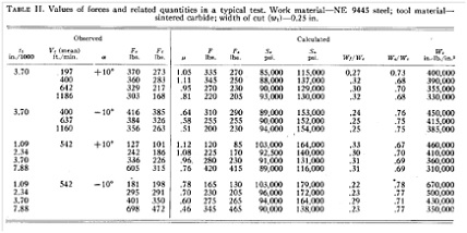 Merchant não realiza uma extensa discussão sobre os valores calculados, apenas salienta que os elevados valores do coeficiente de atrito são objeto de uma outra investigação conduzida por ele junto a H. Ernst, porém aspectos de não formação de filme metálico com baixo coeficiente de atrito por adsorção, além do próprio contato metal-metal sob baixa força de cisalhamento, é a principal explicação para o elevado valor do coeficiente de atrito.