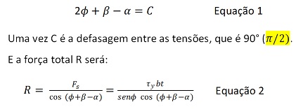 O cisalhamento ocorre no plano OA com no mínimo uma magnitude H, que será a componente efetiva de corte a partir da força R.