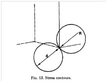 D – Profundidade do escoamento plástico na peça: Drucker novamente é criativo e correto em afirmar que a quantidade de tensão nas adjacências do plano de cisalhamento produzirão deformações com escoamento plástico na peça. E mesmo sem realizar medições, Drucker sugere junto com outros pesquisadores de grande importância, contemporâneos  dele, que é possível obter tensões permanentes na peça, compressivas ou trativas, com valores que excedem a tensão de escoamento estática. Assim, uma zona de tensão definida pelos círculos de diâmetro d, produzida pelo corte, é sugerida por Merchant e Zlatin, e apresentada neste artigo na figura 13.