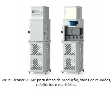 (23/05/2021) – A fabricante de máquinas alemã Junker desenvolveu, em conjunto com a sua subsidiária LTA Lufttechnik, especializada em soluções de filtração, o purificador de ar Virus Cleaner VC 60, destinado a reforçar as medidas de prevenção contra a Covid-19 e bactérias, pólens e outros agentes patogênicos, através da filtração ativa do ar do ambiente.