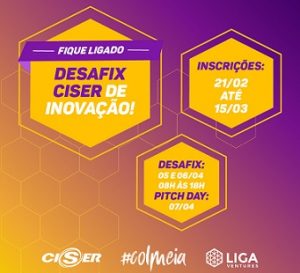 O Desafix será realizado em três encontros, nos dias 5, 6 e 7 de abril. Nos dois primeiros dias, os participantes serão envolvidos em maratonas de inovação. No último, participarão de um Pitch Day com uma banca avaliadora, composta por executivos e lideranças da Ciser, que selecionará a equipe com melhor sinergia com os desafios propostos.