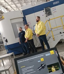 A agenda do dia se concentrou nos desafios da usinagem de componentes em alumínio com foco nos desafios relacionados às máquinas-ferramenta e aos processos aplicados. O evento incluiu um painel de discussão entre especialistas de cada organização. Francisco Cavichiolli, especialista em produtos da Sandvik Coromant, e Rogério de Paula, especialista de aplicação da Grob, discutiram o papel das ferramentas e das máquinas-ferramenta no sucesso e na qualidade da fabricação de componentes em alumínio. As demonstrações ao vivo aconteceram no centro de usinagem universal 5 eixos G550 Grob.