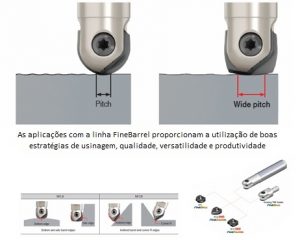 Nas aplicações de semiacabamento e acabamento, em sua maioria, tende-se a utilizar fresas de metal duro esféricas e toroidal nos diversos modelos de perfis. O tempo de usinagem nas operações já relacionadas acaba sendo o grande gargalo, comprometendo a competitividade quanto ao prazo de entrega de uma matriz e/ou uma peça. Pensando neste fator importante chamado “tempo”, para usinagem de moldes e matrizes, a TaeguTec traz ao mercado mais uma linha de alta performance, pensando sempre em tornar nossos clientes mais competitivos. Com a linha FineBarrel, temos a condição de melhores acabamentos com maior produtividade quando comparadas a fresas de metal duro.
