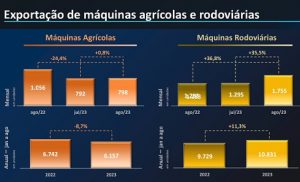Alexandre Bernardes de Miranda, vice-presidente da Anfavea, observa que esses resultados foram obtidos apesar do fato de – no caso das máquinas agrícolas – o agronegócio venha enfrentando alguns desafios nos últimos meses, como o clima e, em especial, a queda do preço das principais commodities – de 8% a 25%, o que se reflete diretamente no apetite dos agricultores em investir em novos equipamentos. Isto, em sua avaliação, explicaria a queda de 10% na comparação com o período janeiro-agosto de 2022.