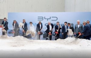 (22/10/2023) – A BYD promoveu em 9 de outubro cerimônia de lançamento da pedra fundamental de suas futuras instalações no Complexo Industrial de Camaçari, na Bahia. A empresa irá investir R$ 3 bilhões na implantação de três fábricas para produzir veículos elétricos, chassis de ônibus e tecnologias de baterias, com o processamento de lítio e ferro fosfato.