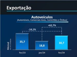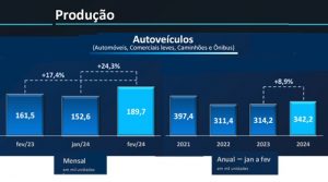 (17/03/2024) – “Os três dias úteis a menos não foram empecilho para que fevereiro superasse janeiro nos três principais indicadores da indústria automobilística brasileira”, destacou a Anfavea, na nota à imprensa referente ao balanço de fevereiro do setor.