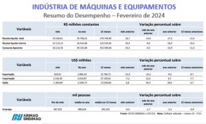 De acordo com a Abimaq, que divulgou os dados do setor na semana passada, “ainda que a receita líquida tenha melhorado em relação ao mês de janeiro, se manteve abaixo do resultado de fevereiro de 2023. Os números observados no primeiro bimestre do ano indicam que o baixo dinamismo da atividade industrial, continuam impactando negativamente investimentos produtivos de alguns segmentos”.