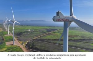 10 Anos de Geração Eólica – No último dia 21, a companhia comemorou os 10 anos de operações da Honda Energy, empreendimento de energia eólica, com 10 aerogeradores, instalado em Xangri-Lá (RS), que garante o fornecimento de energia renovável para a produção dos automóveis da marca no Brasil. A Honda informa que, nestes 10 anos, já produziu 1 milhão de automóveis com energia gerada no parque eólico de Xangri-lá.
