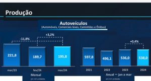 (14/04/2024) – “O crescimento consistente das vendas desde a metade do ano passado vem aos poucos puxando para cima o ritmo da produção de autoveículos no Brasil, apesar da baixa nas exportações”. Esta é a avaliação da Anfavea – Associação Nacional dos Fabricantes de Veículos Automotores ao apresentar o balanço do primeiro trimestre da indústria automobilística, na semana passada.
