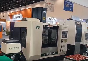 Outra novidade da empresa na feira eram os centros de usinagem verticais Vitor e Buono cvv-8 e CVV-11, com 13 mil e 15 mil rpm respectivamente. “São máquinas com refrigeração pelo centro da ferramenta, com interface pronta para 4º eixo, CNC Siemens 828, NR-12 e excelente custo x benefício”, observa Paulo Ricardo Buono, diretor da empresa. “Assim como na linha ProMill EDM, temos grandes perspectivas de bons negócios nessa linha. Recebemos clientes novos e antigos que vieram conhecer as máquinas, mas demonstração interesse de compra”.