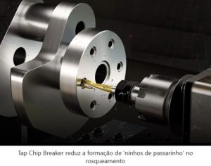 Na Feimec 2024, realizada de 7 a 11 de maio, em São Paulo, a empresa decidiu destacar apenas os seus mais recentes lançamentos. Entre eles, o Tap Chip Breaker. “Esta é uma ferramenta inovadora, voltada para o rosqueamento que, em geral, gera cavacos longos. O Tap Chip Breaker promove a quebra dos cavacos, reduzindo a formação de ‘ninhos de passarinho’ e a consequente quebra do macho, gerando assim um processo mais estável”, informa Rafael Verçosa, gerente de Engenharia da YG-1.