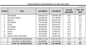 Já nas importações houve um incremento de 3,2% até o mês de maio em relação a igual período do ano anterior, com vendas totais de US$ 8,3 bilhões.