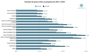 Já em Minas Gerais, os preços praticados são: 3 eixos, R$ 179,82; torno convencional, R$ 102,36; e centro de torneamento horizontal, R$ 148,00.