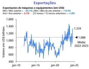 As exportações do mês de julho foram as maiores de 2024 e apresentaram valor recorde para o mês de julho, totalizando US$ 1,33 bilhão.