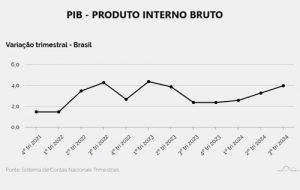 (08/12/2024) – A economia brasileira cresceu 0,9% na passagem do segundo para o terceiro trimestre do ano, empurrada pela indústria e pelo setor de serviços. Foi a 13ª expansão consecutiva. Diante do terceiro trimestre de 2023, o Produto Interno Bruto (PIB) apresentou alta de 4%.