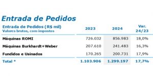 (09/02/2025) – A Romi fechou o ano de 2024 com elevação no volume de entrada de pedidos que, na comparação com o ano anterior, cresceu 17,7%, considerando todas as unidades de negócio; Máquinas, B+W e Fundidos e Usinados.