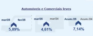 Já quanto às motos, o segmento tem crescido de forma sustentável, apresentando números positivos na comparação entre março e fevereiro de 2025, março deste ano e do ano passado, assim como nos acumulados dos primeiros trimestres de 2024 e 2025.