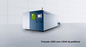 Corte com mais potência: TruLaser 1030 com 12kW – A TruLaser 1030 é robusta, econômica e intuitiva. A porta de entrada ideal para o corte a laser de alta qualidade. “O coração desta máquina é o seu laser de estado sólido TruDisk 12001, conhecido pela sua robustez e desempenho consistente ao longo dos anos. Com uma potência de 12kW, ela garante cortes precisos e eficientes em diversos materiais”, explica Visetti.