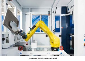 TruBend 7050 com Flex Cell – Robô móvel para as operações de dobra mais rápidas do mercado – A Trumpf também apresenta o Flex Cell, um sistema de automação móvel que transforma a TruBend 7050 em uma célula de dobra autônoma. Com instalação rápida e intuitiva, ele permite a operação contínua da máquina por horas, aumentando a eficiência e superando os desafios da produção moderna, incluindo a crescente escassez de mão de obra qualificada.