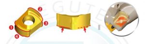 - Insertos de dupla face de 4 arestas de corte positivas para usinagem de alto avanço;