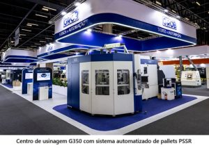 Além do lançamento do G400, a Grob aproveitou a Expomafe 2025 para mostrar o sistema de automatização de pallets PSSR, instalado no estande em um centro de usinagem de 5 eixos G350. “Com esse sistema, com capacidade de 15 pallets, esta máquina está usinando peças diversas, em alumínio e aço, para a nossa fábrica”, disse Bezerra, acrescentando que o objetivo era “o de mostrar um sistema de automação em operação, em tempo real, e produzindo peças”.