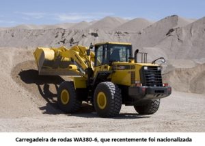 Modelo popular de carregadeira de rodas, a WA380-6 já começou a ser produzida em Suzano este ano. A decisão de fabricá-la no País, segundo a empresa, é uma resposta direta à crescente demanda por carregadeiras de rodas deste porte no setor de construção, além de outros segmentos como mineração, locação, indústria, agricultura e florestal.