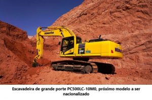 Outro modelo que será nacionalizado é a escavadeira de grande porte PC500LC-10M0. Comercializada no Brasil desde 2019, a máquina tem ganhado cada vez mais espaço na classe de 50 toneladas, por sua alta eficiência e baixo consumo de combustível, atendendo à demanda do mercado, que vem crescendo anualmente, principalmente nos setores de agregados e mineração.