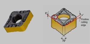Geometria Positiva: Os insertos FCMX possuem uma geometria positiva que contribui para menores forças de corte. Isso é crucial para o torneamento de alto avanço, pois ajuda a reduzir a vibração e o esforço sobre a máquina e a peça.