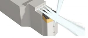 Abastecimento Interno de Fluido de Corte (Superior e Inferior): Os porta-ferramentas são projetados com canais internos que fornecem fluido de corte diretamente à aresta de corte, tanto superior quanto inferior direcionado à aresta de corte do inserto. Isso maximiza a lubrificação e o resfriamento, melhora o controle do cavaco e estende a vida do inserto.