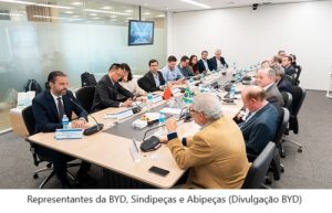 Participaram do encontro Cláudio Sahad, presidente da Abipeças e do Sindipeças; Tyler Li, presidente da BYD Brasil, e Alexandre Baldy, vice-presidente da BYD Auto Brasil. O seminário online contou com a participação de quase 300 associados de dezenas de empresas brasileiras interessadas em fazer parte da cadeia de fornecimento da BYD.