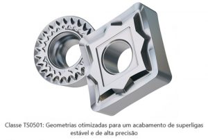 A TS0501 está disponível em uma variedade de geometrias e quebra-cavacos para atender diferentes necessidades de acabamento, sendo totalmente compatível com os porta-ferramentas existentes, garantindo uma transição suave nas linhas de produção.