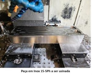 Entretanto, essas mesmas características tornam o 15-5PH um material de difícil usinabilidade. O corte gera calor concentrado na aresta da ferramenta, favorecendo o desgaste acelerado por abrasão e adesão, além de dificultar o controle da formação de cavacos e rebarbas. Por isso, a usinagem desse aço exige ferramentas altamente resistentes ao desgaste, geometrias estáveis e estratégias de refrigeração eficientes, capazes de manter a produtividade sem comprometer a vida útil.