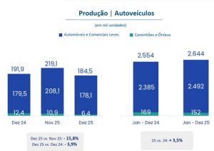“Essa alta deverá ser concentrada em veículos leves, com expansão de 3,8%”, diz Calvet. “Para caminhões e ônibus, a previsão é de uma produção de 154 mil unidades, 1,4% acima dos 152 mil fabricados em 2025”.