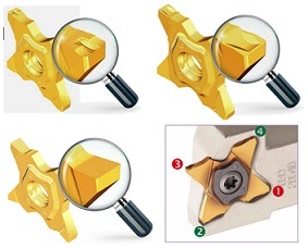 As pastilhas estão disponíveis nos formatos CCET / DCET/ TCET e VCET com raios de ponta de 0,03 (wiper) /0,1 /0,2 e 0,4 mm em metal duro submicrogrão, projetado para usinagem de peças pequenas. Os porta-pastilhas de precisão estão disponíveis em hastes quadradas de 10 ate 16 mm em vários formatos.