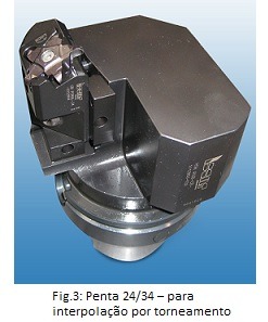 A Figura 3 mostra uma ferramenta especialmente desenhada para interpolação em operações de torneamento. Essa ferramenta pode ser ajustada radialmente e axialmente, de maneira que as tolerâncias apertadas do contorno da V-band possam ser realizadas. Para os usuários finais, a Iscar oferece uma solução customizada para esse contorno, através do torneamento por meio do eixo-U ou pelo faceamento radial, através do deslizamento da unidade, bem como pelo torneamento por interpolação.