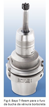 Mesmo para o furo da bucha da válvula borboleta da carcaça da turbina, a Iscar oferece uma solução econômica orientada para o cliente. Nesse caso, o sistema de furação modular com ponta intercambiável Sumocham e o sistema de alargamento modular Bayo T-Ream entram em ação. Como o sistema Sumocham, o sistema Bayo T-Ream fornece pontas de alargamento intercambiáveis. Especialmente para as operações de alargamento em ligas resistentes ao calor dos aços fundidos, a Iscar desenvolveu uma ponta de alargamento que é capaz de atingir até 20% de tempo superior de vida em comparação com as ferramentas concorrentes. Isso é possível devido a um inovador e proposital sistema de refrigeração na zona de corte.