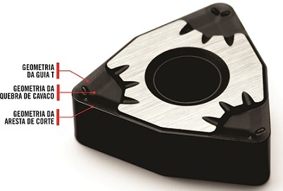 As arestas de corte agudas geram baixas forças de corte, reduzem a tendência das arestas postiças, aumentam a vida útil da ferramenta, porém são menos estáveis. A geometria da guia T corresponde à zona de transição entre a geometria da aresta de corte e a geometria da quebra de cavaco. As geometrias positivas da guia T geram temperaturas de corte mais baixas, menos desgaste, maior capacidade em termos de velocidade de corte, menores zonas de pressão máxima e forças de corte reduzidas. Contudo, a concentração de tensão-estresse é maior, assim como o risco de lascamento da aresta de corte.