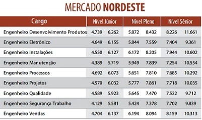 No Nível Pleno, o maior salário chega a R$ 7.898,00 para Engenheiros de Instalação e o menor é para os Engenheiros de Segurança do Trabalho, com R$ 7.102,00.