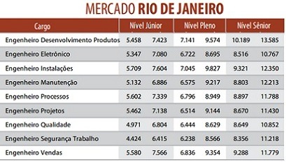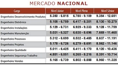 De acordo com a pesquisa, no Nível Júnior, a maior remuneração, de acordo com a média nacional, é para Engenheiros Eletrônicos: R$ 6.011,00. A menor fica para os Engenheiros Da Segurança do Trabalho, com R$ 5.380,00.